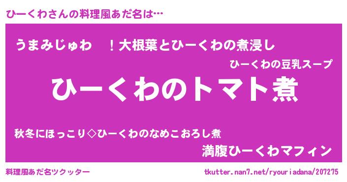 ヘコむあだ名 | 『つくし』『ひーくわ(笑)』 |