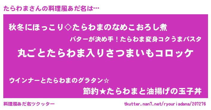 ヘコむあだ名 | 『たらにー』『豆乳』『たらお』 |