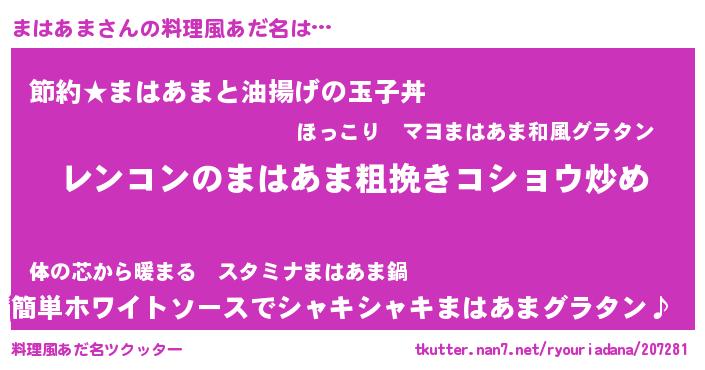 意味不明あだ名 | 『自称まはあま』『ペロリンまはあま』 |