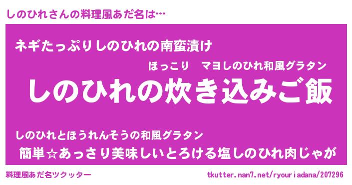意味不明あだ名 | 『ペロリンしのひれ』『永久保存しのひれ』 |