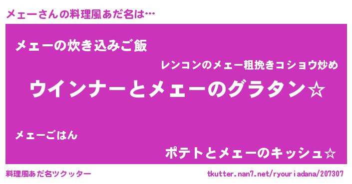意味不明あだ名 | 『メェーフォーエバー』『自称メェー』 |