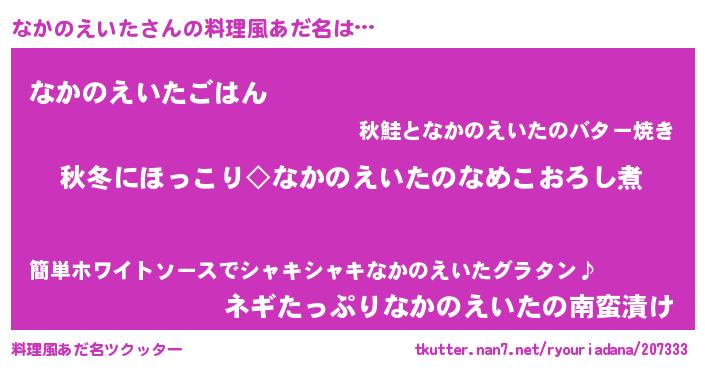男性向けラノベタイトル風あだ名 | 『なかのえいたに滅ぼされるだけの簡単なお仕事です』 |