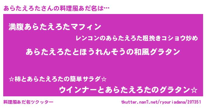 | ヘコむあだ名 | 『あらたえろた(笑)』『なまこ酢』 |