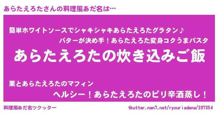 | ヘコむあだ名 | 『あらぷりん』『あらたえろた(爆)』 |