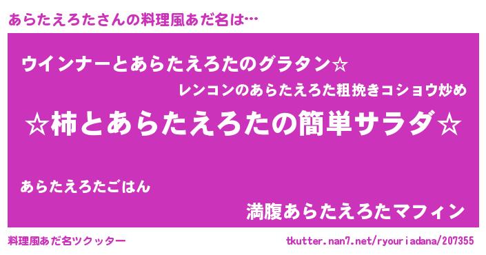 | 欧米人風あだ名 | 『あらたえろた・ステッグマイヤー』 |