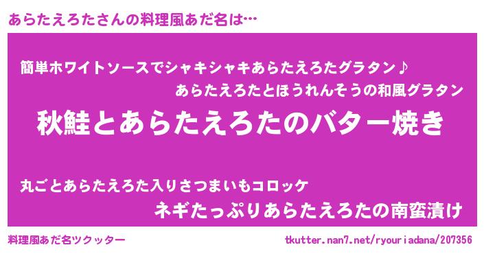 | 意味不明あだ名 | 『永久保存あらたえろた』 |
