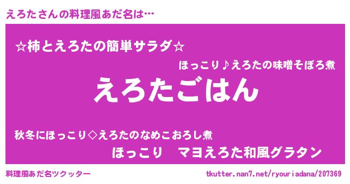| 意味不明あだ名 | 『めかぶ科えろた属』『ペロリンえろた』 |
