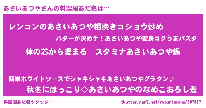ヘコむあだ名 | 『牛乳』『あさっちょ』『あさふぇ~』 |