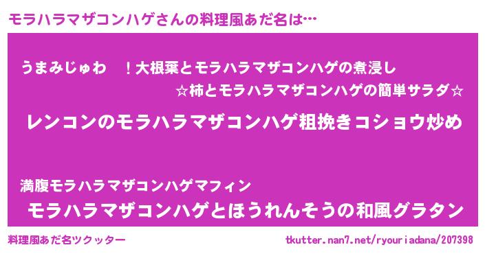 | 胡散臭い通販商品みたいなあだ名 | 『ガンによく効くアガリクス…その名も「モラハラマザコンハゲ」』 |