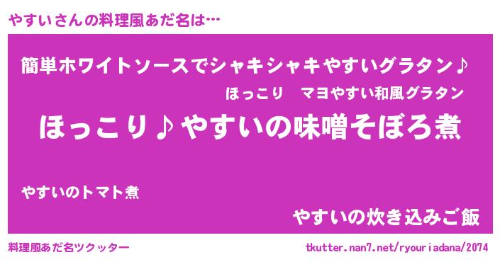 | 男性向けラノベタイトル風あだ名 | 『やすいの憂鬱』 |