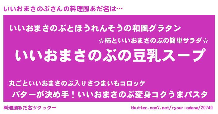 | 女子向けラノベタイトル風あだ名 | 『いいおまさのぶは平凡を望む』 |