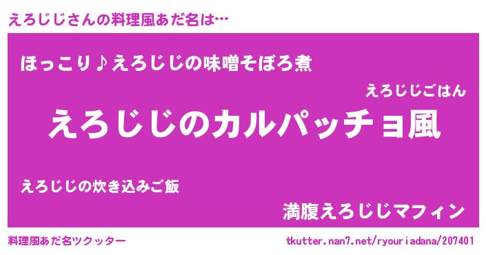 | 男性向けラノベタイトル風あだ名 | 『魔弾の王とえろじじ』『えろじじの憂鬱』 |