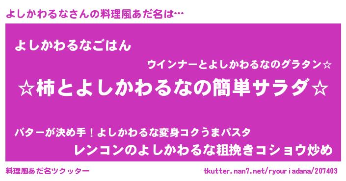 | 欧米人風あだ名 | 『よしかわるな・ステッグマイヤー』 |