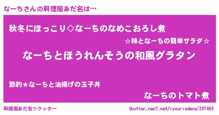 | 意味不明あだ名 | 『もやし科なーち属』『ペロリンなーち』 |