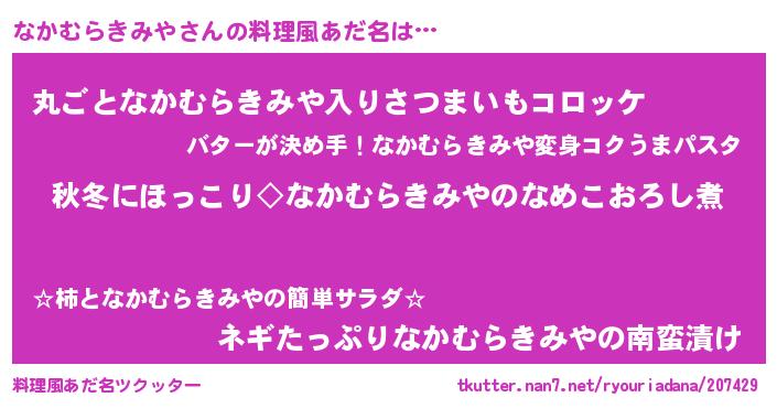 | ヘコむあだ名 | 『なかっふぃ~』『なかむらきみや(震え声)』 |