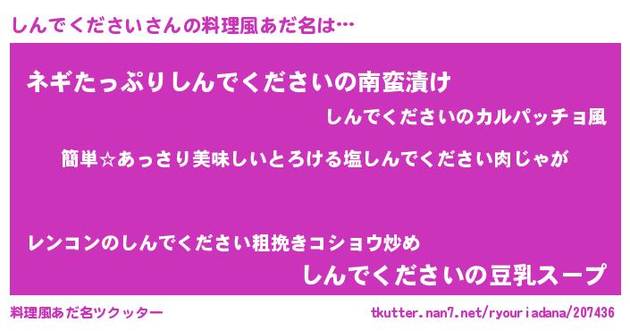 | ヘコむあだ名 | 『しんでください(笑)』『しんもー』 |