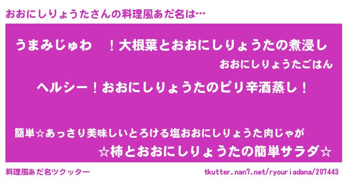 | 男性向けラノベタイトル風あだ名 | 『Re:おおにしりょうたから始める異世界生活』 |