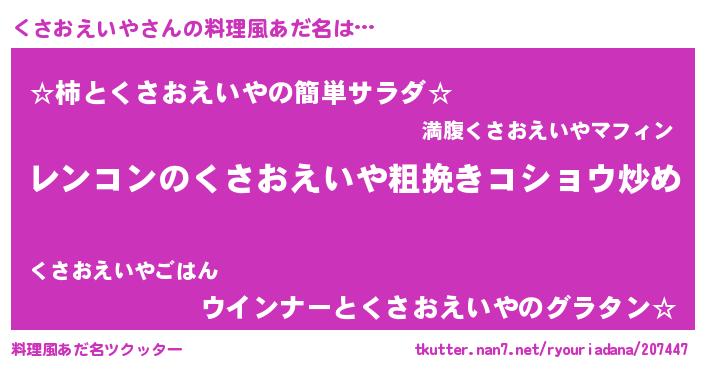 | 欧米人風あだ名 | 『ケンブリッジくさおえいや』 |