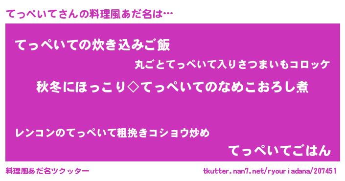 | 男性向けラノベタイトル風あだ名 | 『てっぺいてに滅ぼされるだけの簡単なお仕事です』 |