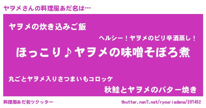 | ピコ太郎風あだ名 | 『ヤコ八郎』『ピコヤ郎』『ヤヲ十郎』 |