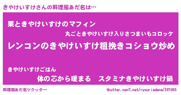 | 女子向けラノベタイトル風あだ名 | 『きやけいすけなんてお断りですっ。』 |