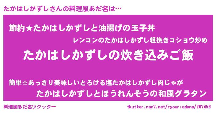 | ヘコむあだ名 | 『たかにー』『たかはしかずし(遠い目)』 |