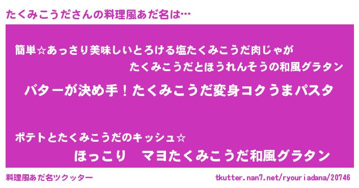 | ヘコむあだ名 | 『たくみこうだ(苦笑)』『たくお』 |