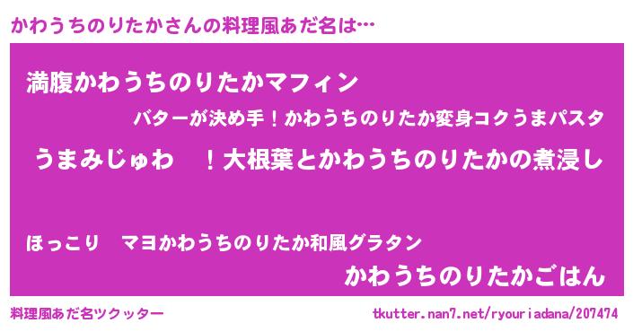 | 可愛いあだ名 | 『かわちー』『かわうちのりたかママ』 |