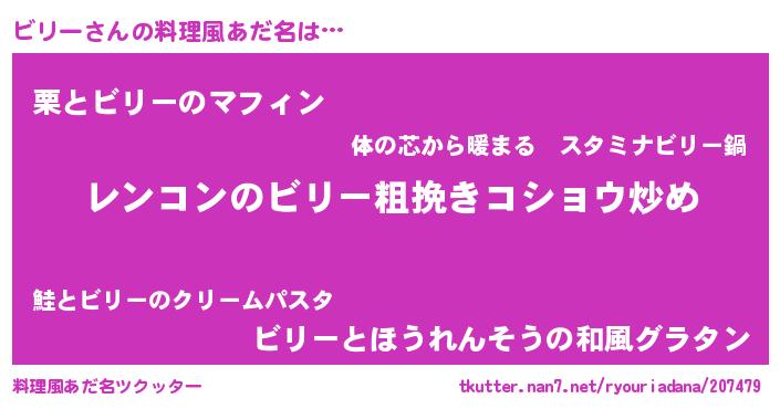 | 意味不明あだ名 | 『自称ビリー』『たけのこ科ビリー属』 |