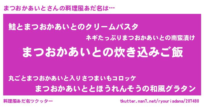 | ヘコむあだ名 | 『まつにゅー』『まつを』『なまこ酢』 |