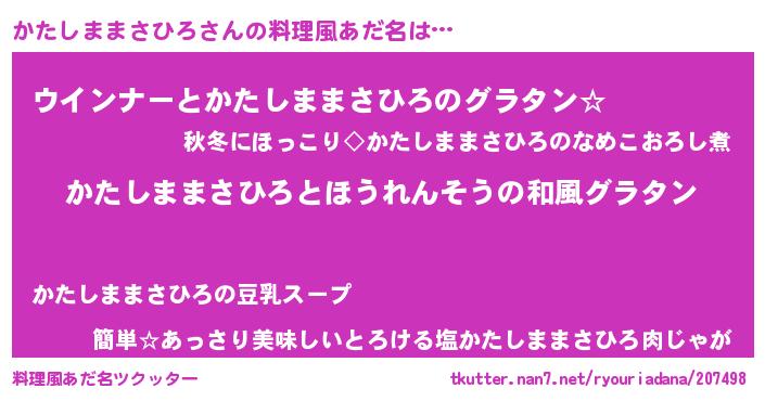 | 欧米人風あだ名 | 『トリンドルかたしままさひろ』 |