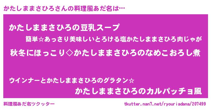 | ヘコむあだ名 | 『かたっちょ』『かたしままさひろ(笑)』 |
