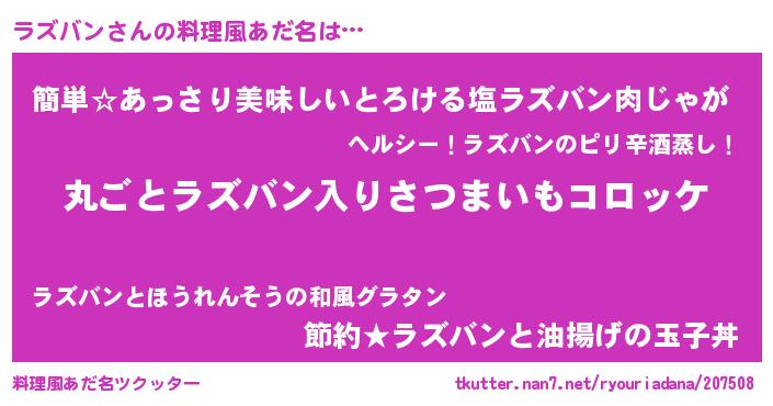 | ピコ太郎風あだ名 | 『ピコラ郎』『ラコ八郎』『ラズ三郎』 |