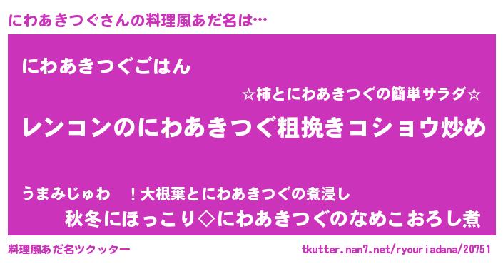 | 意味不明あだ名 | 『自称にわあきつぐ』 |