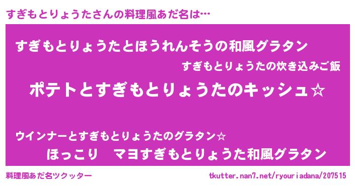| 肩書あだ名 | 『すぎもとりょうたリーダー』 |