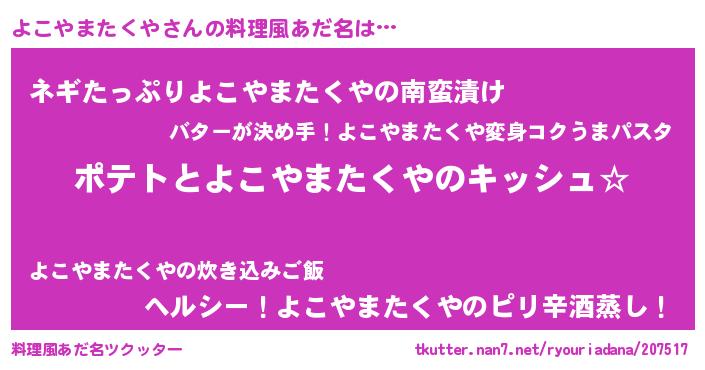 | 胡散臭い通販商品みたいなあだ名 | 『伝統あるサプリメント…その名も「よこやまたくや」』 |