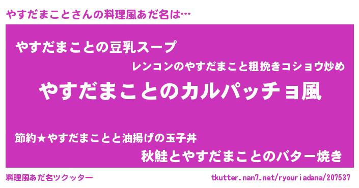 | ヘコむあだ名 | 『やすぷりん』『やすだまこと(爆)』 |