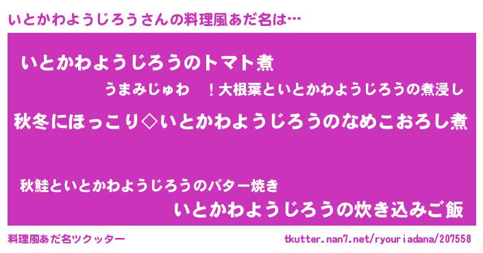 | 男性向けラノベタイトル風あだ名 | 『いとかわようじろうに滅ぼされるだけの簡単なお仕事です』 |