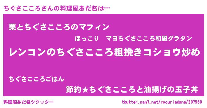 | 意味不明あだ名 | 『自称ちぐさこころ』 |