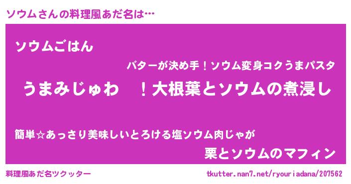 | 恥ずかしいあだ名 | 『ソウっちょ』『ボンバーヘッドソウ』 |