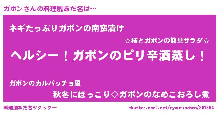 | 男性向けラノベタイトル風あだ名 | 『Re:ガボンから始める異世界生活』 |