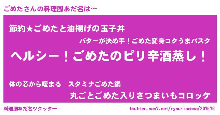 | 意味不明あだ名 | 『自称ごめた』『ペロリンごめた』 |