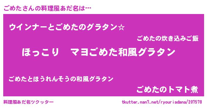 | 男性向けラノベタイトル風あだ名 | 『この素晴らしい世界にごめたを!』 |