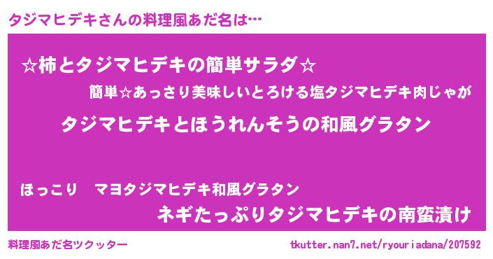 | ヘコむあだ名 | 『タジもー』『タジマヒデキ(小並感)』 |