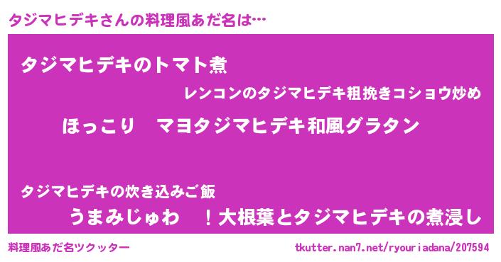 | 意味不明あだ名 | 『住所不定無職タジマヒデキ(53歳)』 |