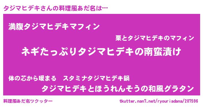 | ヒーロー風カッコイイあだ名 | 『スーパータジマヒデキ』『仮面タジダー』 |