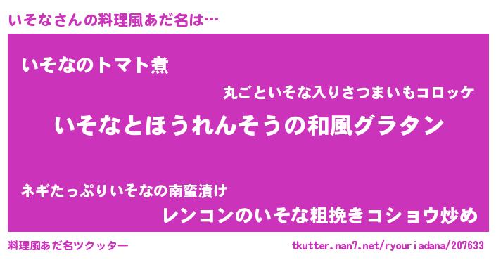 | 意味不明あだ名 | 『ヨモギ科いそな属』『自称いそな』 |
