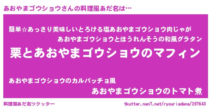 | 意味不明あだ名 | 『永久保存あおやまゴウショウ』 |