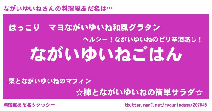 | 恥ずかしいあだ名 | 『ナガイユイネデラックス』『ながちん』 |