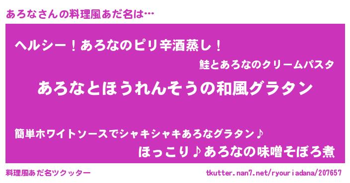 | 意味不明あだ名 | 『なめこ科あろな属』『自称あろな』 |